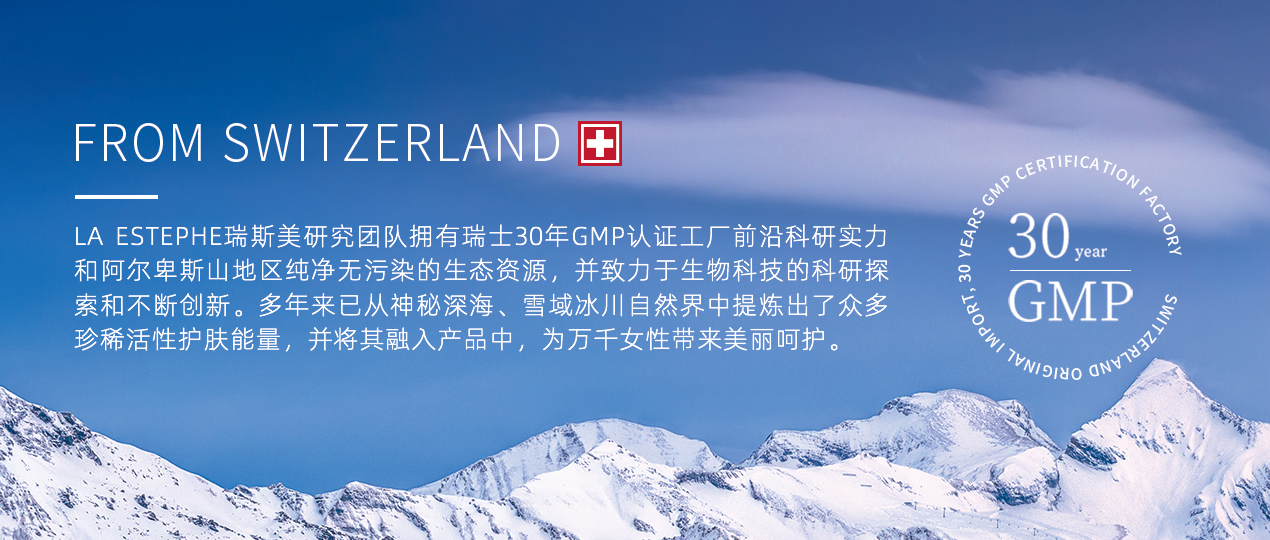 La Estephe瑞斯美在环境天然纯净的瑞士诞生。多年来在对雪域冰川、神秘深海的竭力探索中,倾力奉献潜心研究。采用阿尔卑斯山系高渗透性冰川水,配合医用级天然动植物菁萃,从自然界中提炼出了众多珍稀护肤能量,让每吋肌肤都沉浸在纯净、天然、安全的体验里。