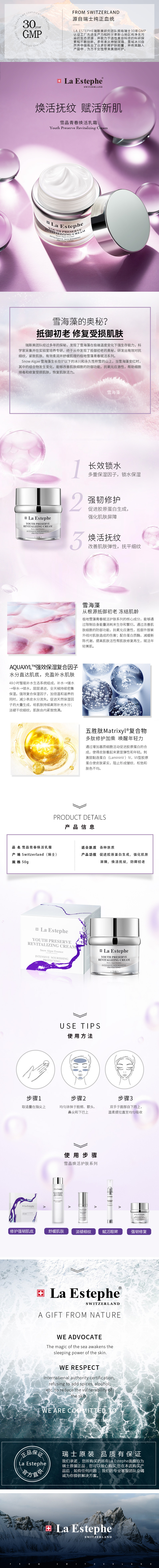 蕴含卓越的雪海藻提取物*和五胜肽Matrixyl®成分,促进胶原蛋白生成,强化肌肤屏障,焕活抚纹,防御初老。(雪海藻提取物*指成分表里的叶黄素、卵磷脂、麦芽糊精)