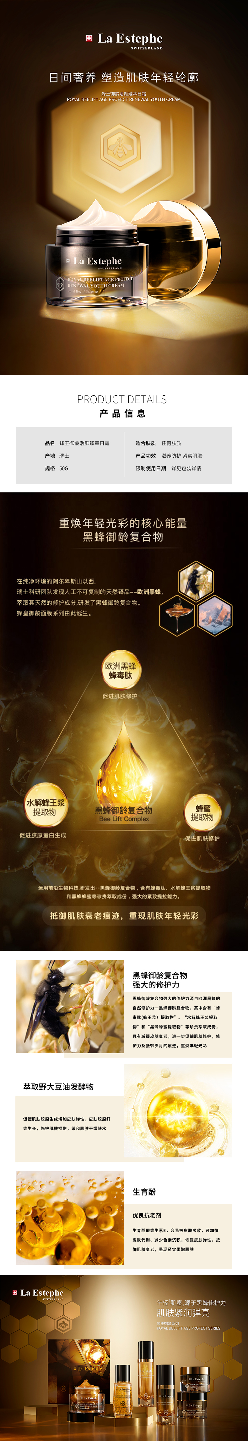 日间滋养,有效修护肌肤,赋活年轻蜜润光泽;奶油乳霜质地,清新滋养不黏腻。