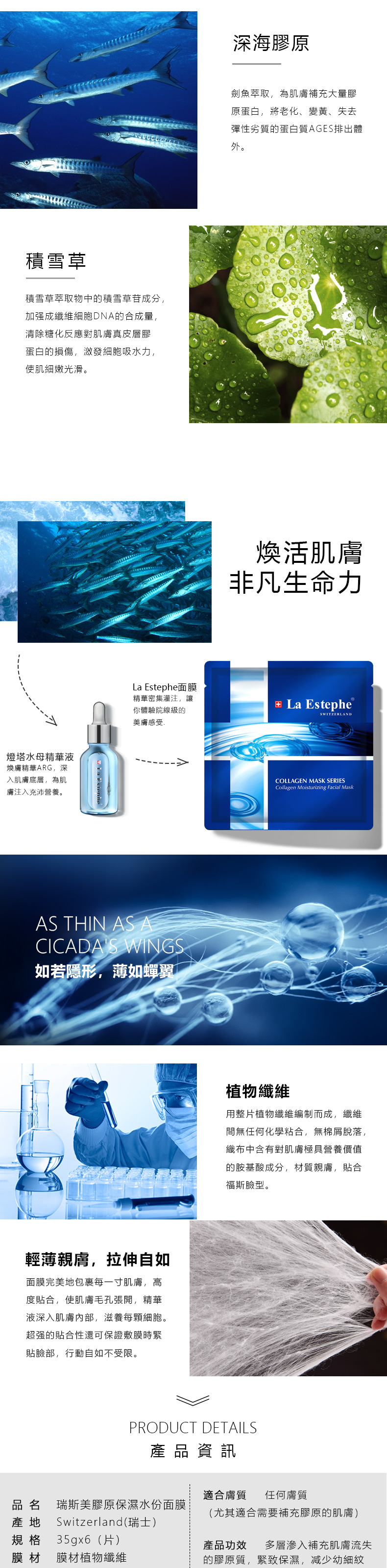 多層滲入補充肌膚流失的膠原質,緊實保濕,减少幼細紋