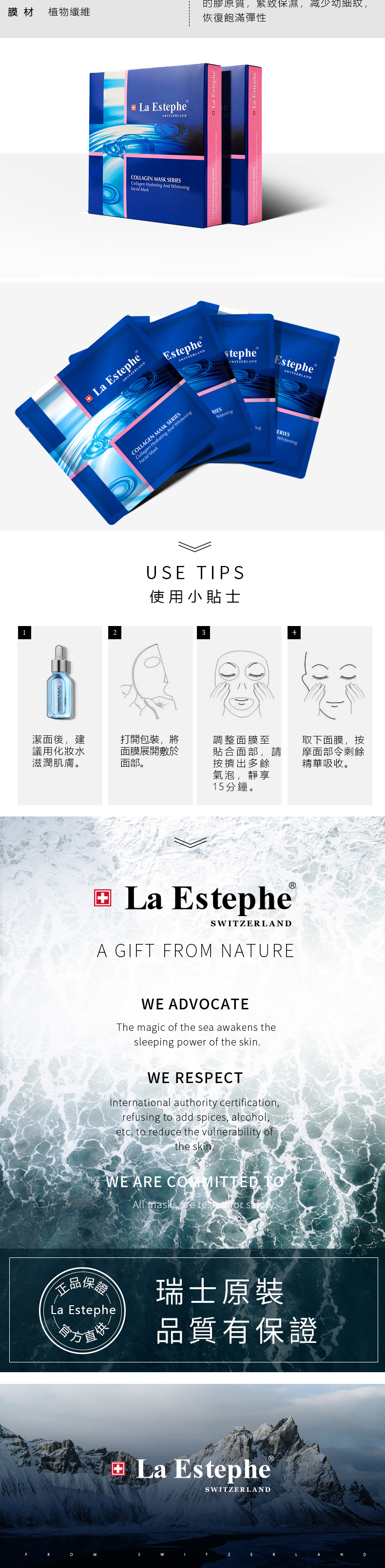 多層滲入補充肌膚流失的膠原質,緊實保濕,减少幼細紋,恢復飽滿彈性