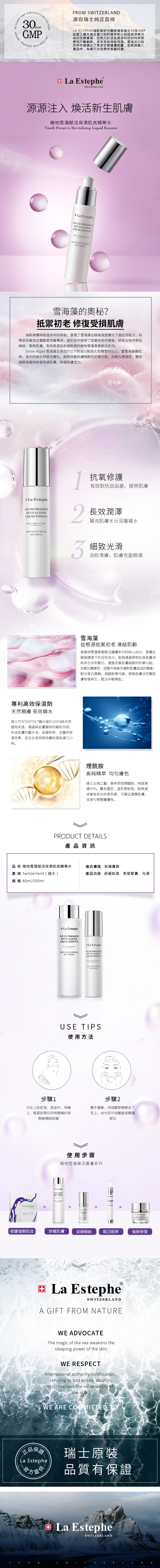 質地清爽舒潤的肌底精華水,具有調理及修護雙重功效,作為修護的第一步,源源注入肌膚,有效柔潤並舒緩肌理,愈發緊實、光滑、煥發出年輕光采