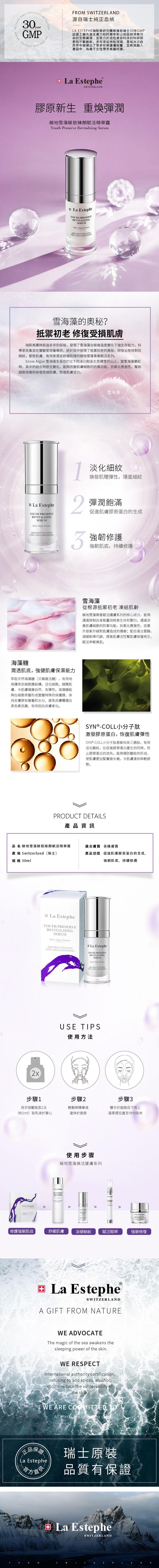 蘊含卓越的雪海藻和煥活細胞成分,促進肌膚膠原蛋白的生成與細胞防禦機制的增強,層層淡褪幹紋細紋,重煥彈潤光滑年輕。